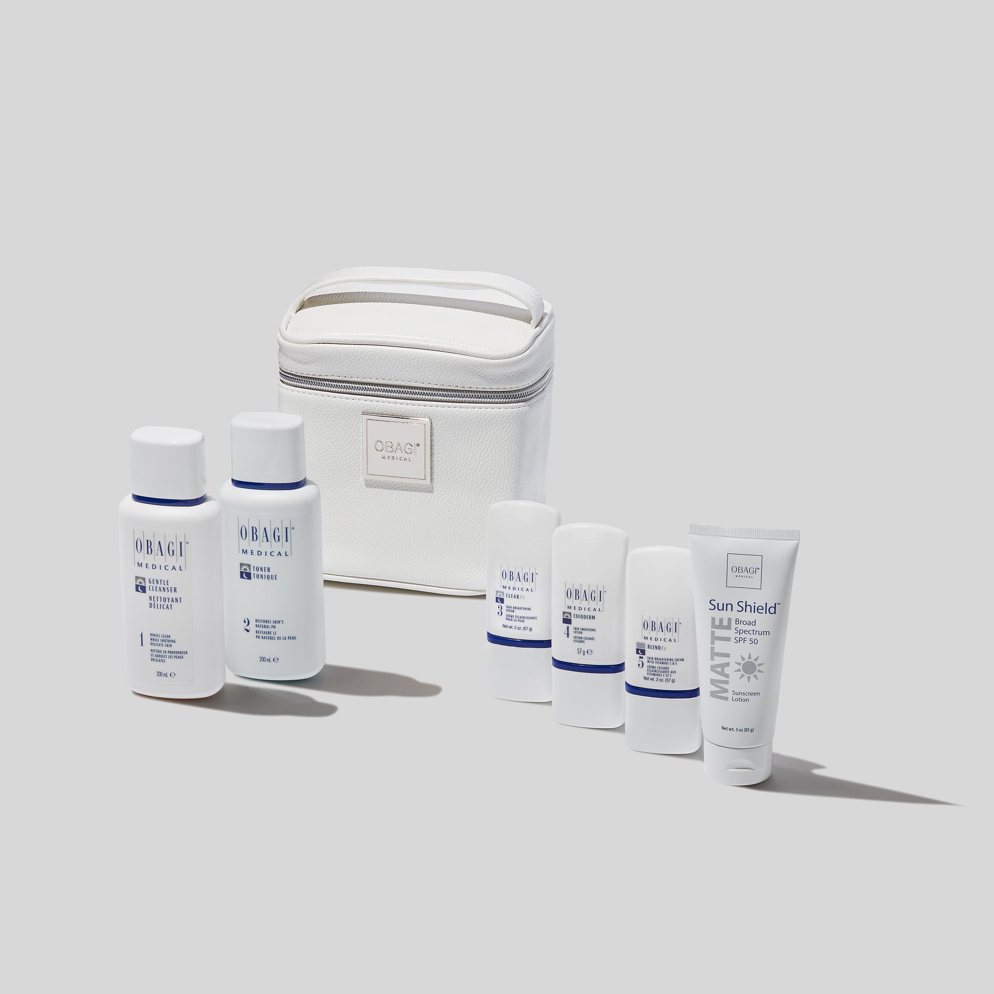 The Obagi Nu-Derm Fx System, now available in a travel bag, is a complete skin care routine system to help transform the look of your skin by noticeably evening out and brightening your complexion.